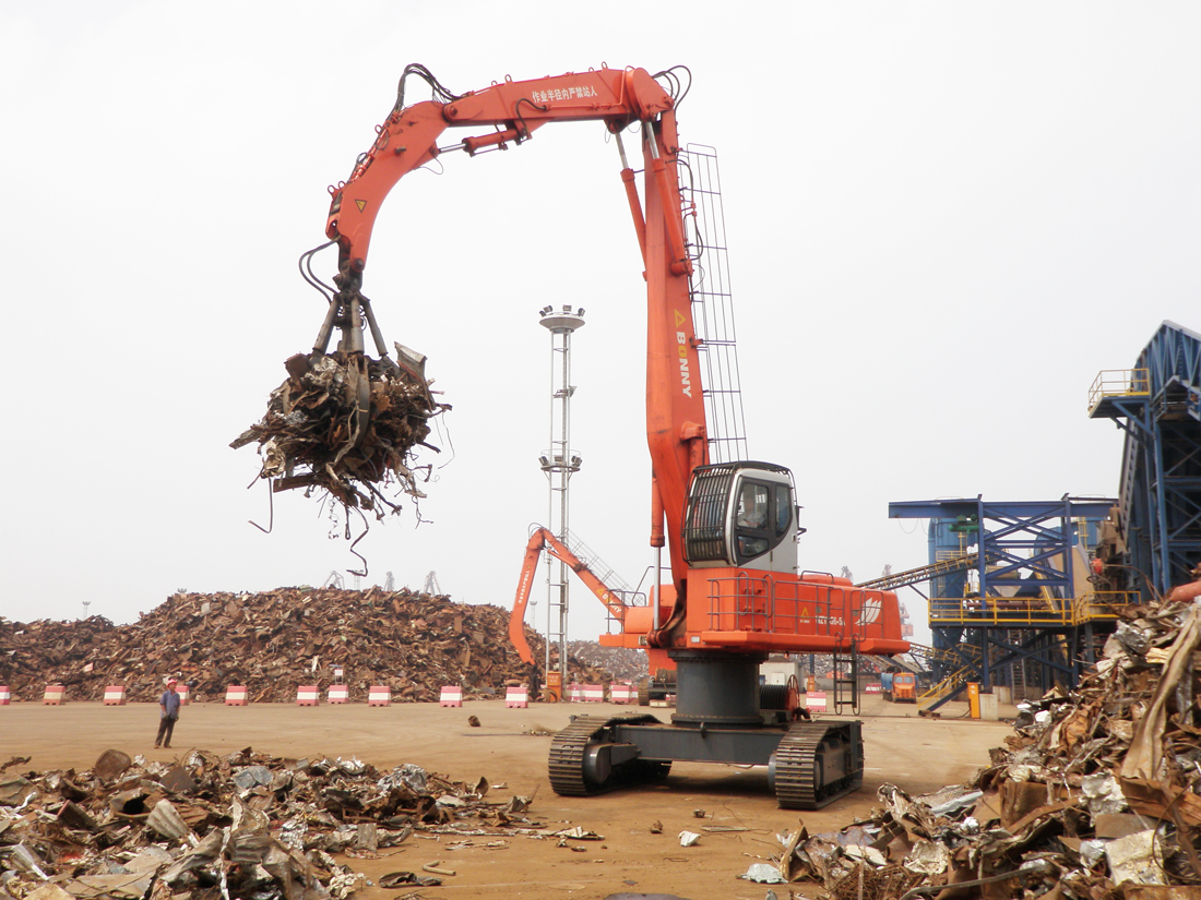 ●可以選擇配備多種工作裝置(抓斗)實(shí)現(xiàn)廢鋼、圓木、木屑、原煤、草料等多種物料的抓取、裝卸
